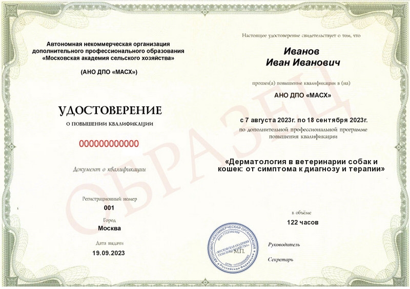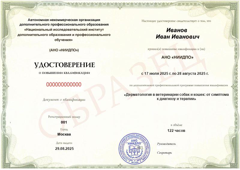 Учебный план программы повышения квалификации «Дерматология в ветеринарии собак и кошек: от симптома к диагнозу и терапии»
