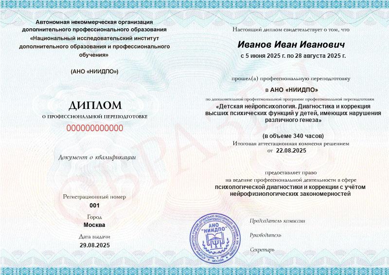 Студент, желающий поступить в АНО «НИИДПО», должен предоставить справку из образовательной организации. Независимо от срока окончания обучения по программе дополнительного образования, диплом о профпереподготовке выдаётся только после предъявления документа о получении среднего профессионального или высшего образования.