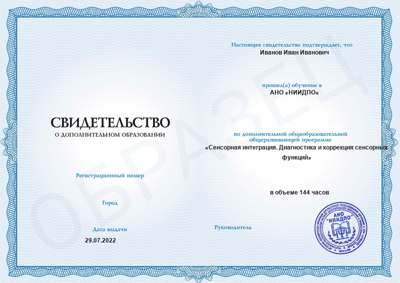 Сенсорная интеграция. Диагностика и коррекция сенсорных функций (144ч)