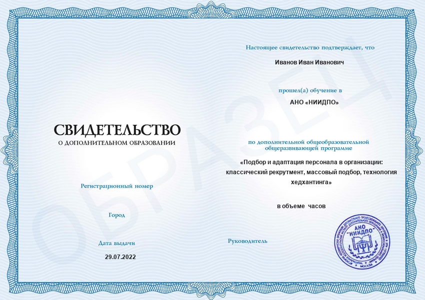 Подбор и адаптация персонала в организации: классический рекрутмент, массовый подбор, технология хедхантинга (144ч)