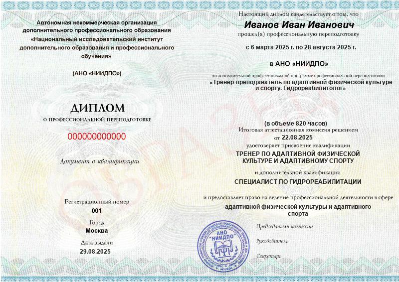 Обзор программы профессиональной переподготовки «Тренер-преподаватель по адаптивной физической культуре и спорту. Гидрореабилитолог» с присвоением квалификации «Тренер по адаптивной физической культуре и адаптивному спорту» с дополнительной квалификацией «Специалист по гидрореабилитации»