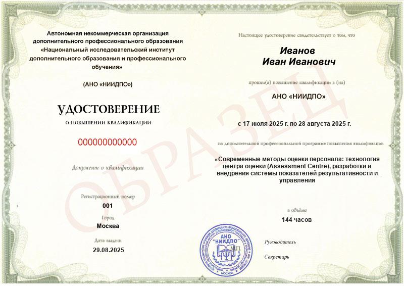 Современные методы оценки персонала: технология центра оценки (Assessment Centre), разработки и внедрения системы показателей результативности и управления по целям (Management by Objectives) (144ч)