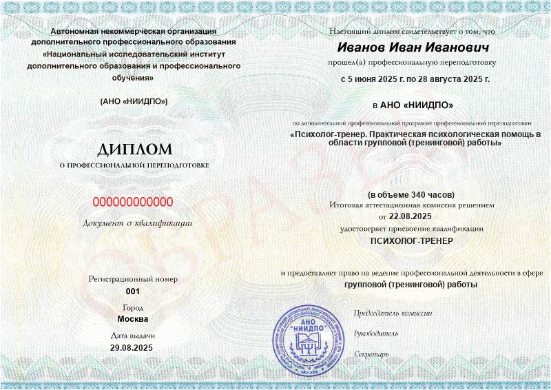Психолог-тренер. Практическая психологическая помощь в области групповой (тренинговой) работы (340ч)